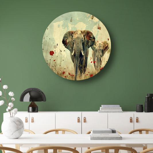 De Olifanten muurcirkels laten het iconische silhouet van de olifant schitteren in ronde wanddecoratie die zowel kracht als zachtheid uitstraalt. De ontwerpen gebruiken rustige kleuren en subtiele details; denk aan het sluimerende silhouet van een olifant te midden van de natuur of een close-up van zijn grijze huid. Deze prints komen prachtig tot hun recht op materialen zoals Forex en aluminium, licht van gewicht maar duurzaam genoeg voor binnen én buiten. Dankzij de cirkelvorm krijgt elke afbeelding een elegante compositie die direct de aandacht trekt. Je kunt één opvallend exemplaar kiezen als blikvanger of meerdere combineren voor een speels en samenhangend geheel dat je interieur een vleugje natuur en karakter geeft.