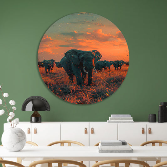 Olifantenkudde traverseert savanne aluminium muurcirkel