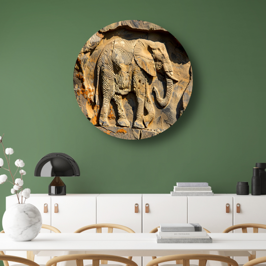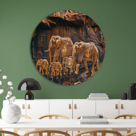 Olifant in het Duister met Slagtanden aluminium muurcirkel