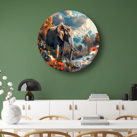 De Olifanten muurcirkels laten het iconische silhouet van de olifant schitteren in ronde wanddecoratie die zowel kracht als zachtheid uitstraalt. De ontwerpen gebruiken rustige kleuren en subtiele details; denk aan het sluimerende silhouet van een olifant te midden van de natuur of een close-up van zijn grijze huid. Deze prints komen prachtig tot hun recht op materialen zoals Forex en aluminium, licht van gewicht maar duurzaam genoeg voor binnen én buiten. Dankzij de cirkelvorm krijgt elke afbeelding een elegante compositie die direct de aandacht trekt. Je kunt één opvallend exemplaar kiezen als blikvanger of meerdere combineren voor een speels en samenhangend geheel dat je interieur een vleugje natuur en karakter geeft.