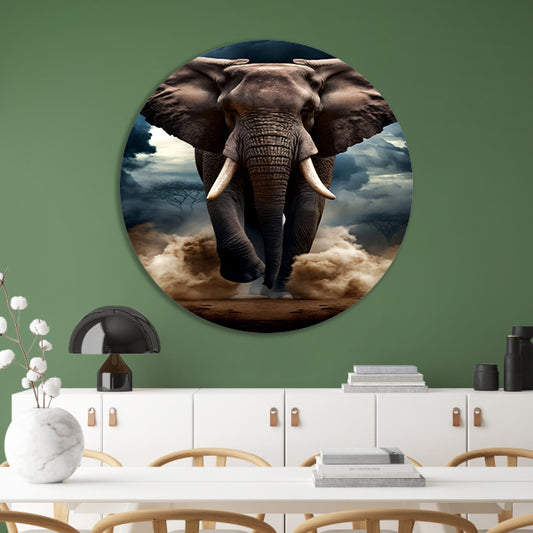 Olifant doorstaat woeste storm aluminium muurcirkel