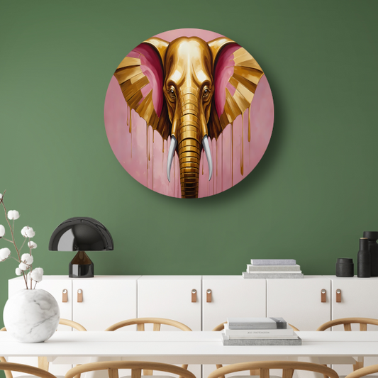 Gouden olifant tegen roze achtergrond forex muurcirkel