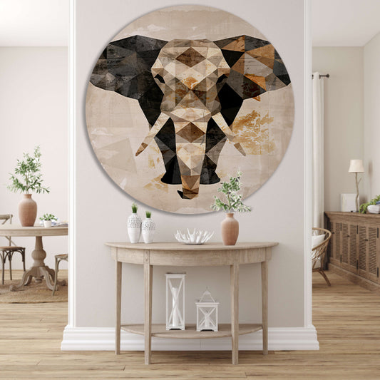 Abstracte Olifant in Geometrische Harmonie aluminium muurcirkel