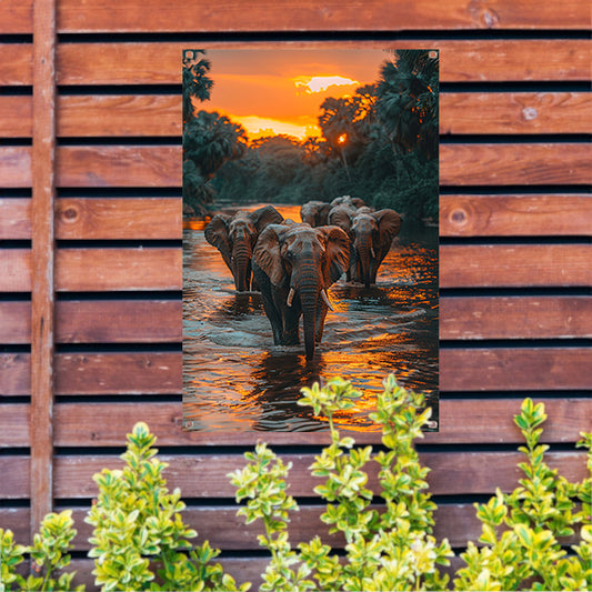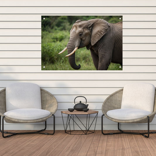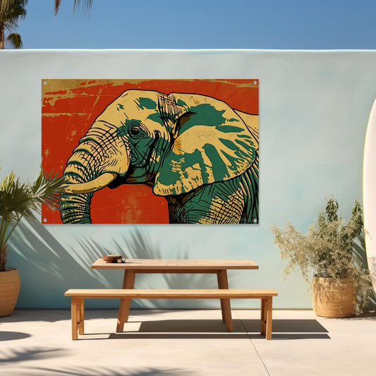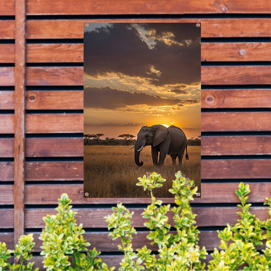 De Olifanten tuinposters brengen de kracht en het karakter van dit indrukwekkende dier naar je buitenruimte. In de collectie vind je verschillende stijlen: van kleurrijke abstracte ontwerpen tot rustige zwart-wit en sepia beelden. Ook posters met olifanten in een warme zonsondergang of als stoer silhouet zijn beschikbaar. Elke afbeelding straalt een unieke sfeer uit en geeft je tuin of terras een bijzondere uitstraling. De posters zijn gemaakt van sterk, weerbestendig materiaal en voorzien van metalen ringen, zodat je ze eenvoudig kunt ophangen aan een schutting, muur of balkon. Ze zijn bestand tegen regen en zon en blijven daardoor lang mooi. Met een Olifanten tuinposter voeg je eenvoudig een stijlvol en krachtig accent toe aan je buitenomgeving.