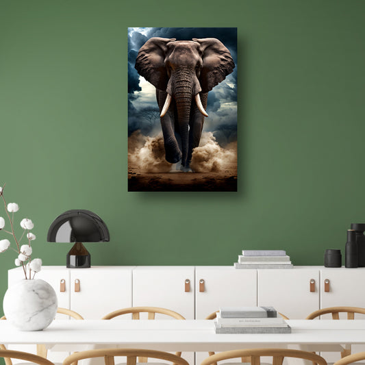 Olifant doorstaat woeste storm canvas met baklijst