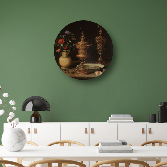 Stilleven met bloemen en vergulde bekers - Clara Peeters aluminium muurcirkel