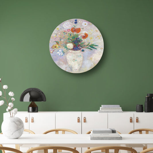 Vaas met bloemen - Odilon Redon aluminium muurcirkel