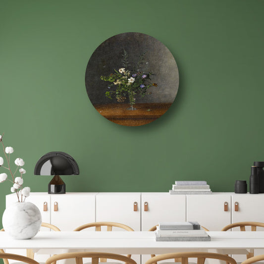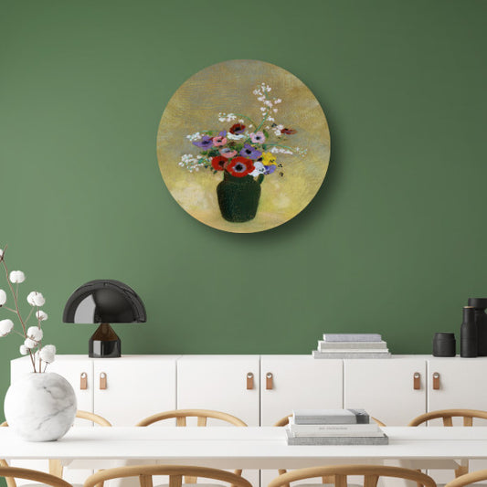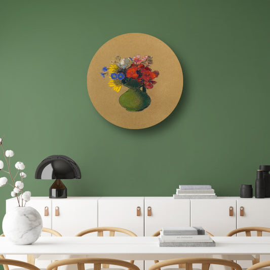 Grote Groene Vaas met Gemengde Bloemen - Odilon Redon aluminium muurcirkel