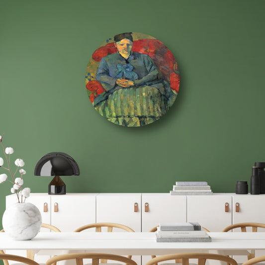 Portret van mevrouw Cézanne in een rode fauteuil - Paul Cézanne aluminium muurcirkel