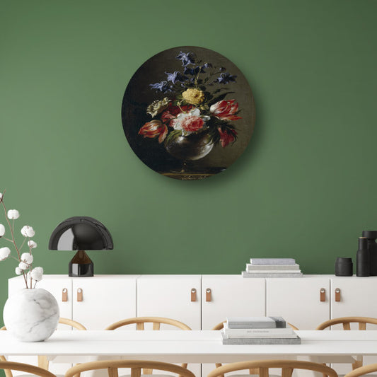 Vaas met bloemen - Juan de Arellano aluminium muurcirkel