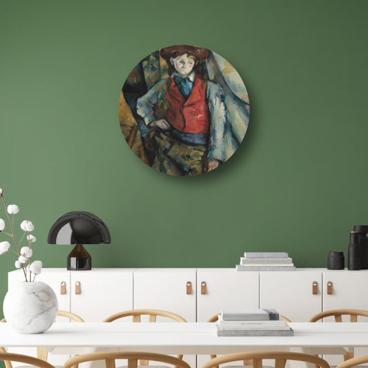 Jongen in een rood vest - Paul Cézanne aluminium muurcirkel