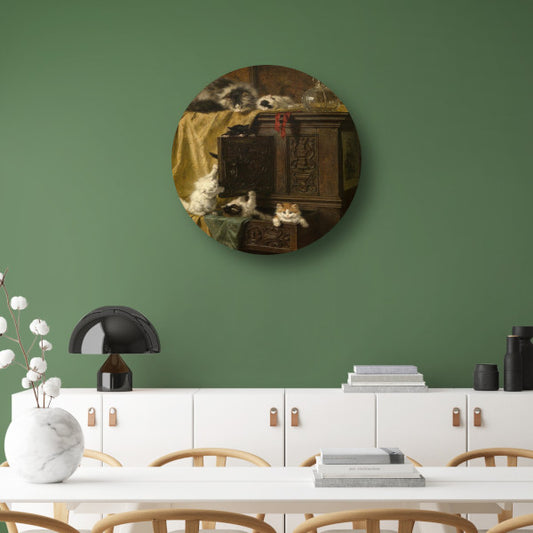 Kat met kittens - Henriëtte Ronner-Knip aluminium muurcirkel