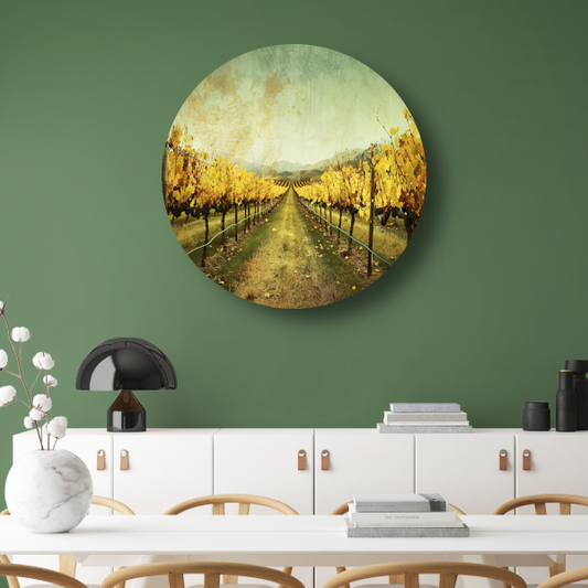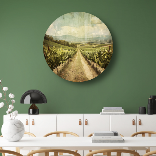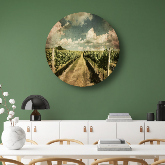 Rustieke wijngaard met sepia hemel aluminium muurcirkel
