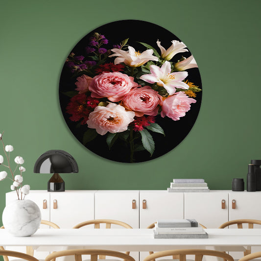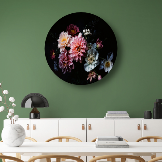 Weelderige bloemenpracht tegen donkere achtergrond forex muurcirkel