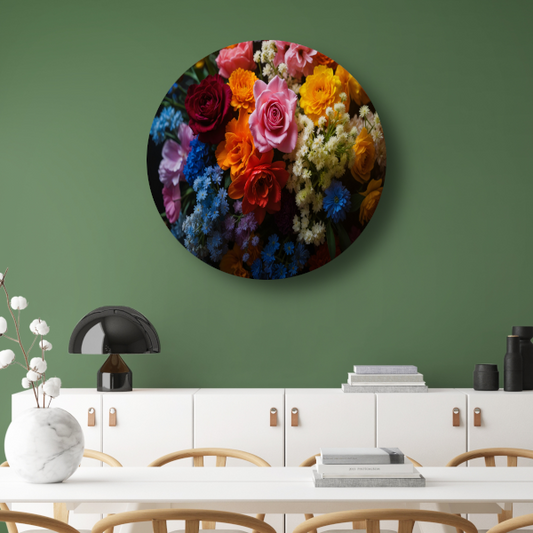 Prachtig Kleurrijk Bloemenarrangement op Zwart forex muurcirkel