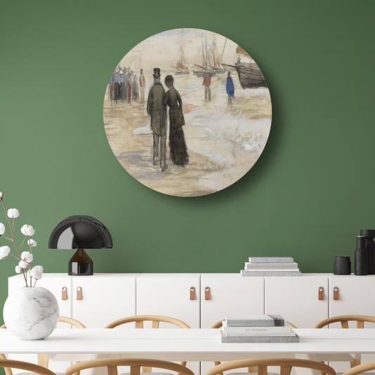 Het strand van Scheveningen - Vincent van Gogh aluminium muurcirkel