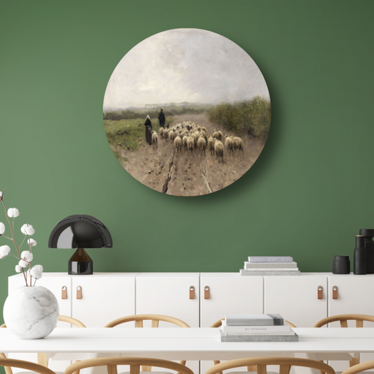 Op weg naar de weide - Anton Mauve aluminium muurcirkel