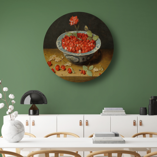 Stilleven met aardbeien in een porseleinen kom - Jacob van Hulsdonck aluminium muurcirkel