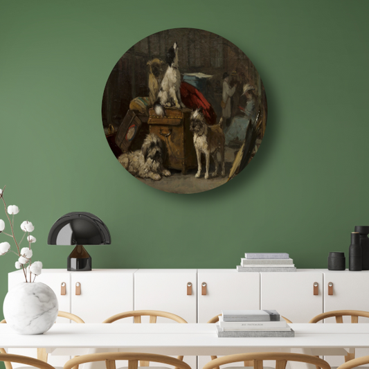 Geiten en Hond Vechtend - Henriëtte Ronner-Knip aluminium muurcirkel