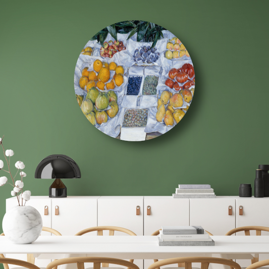 Fruit weergegeven op een standaard - Gustave Caillebotte aluminium muurcirkel