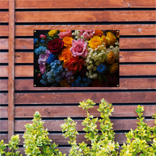 Prachtig Kleurrijk Bloemenarrangement op Zwart tuinposter