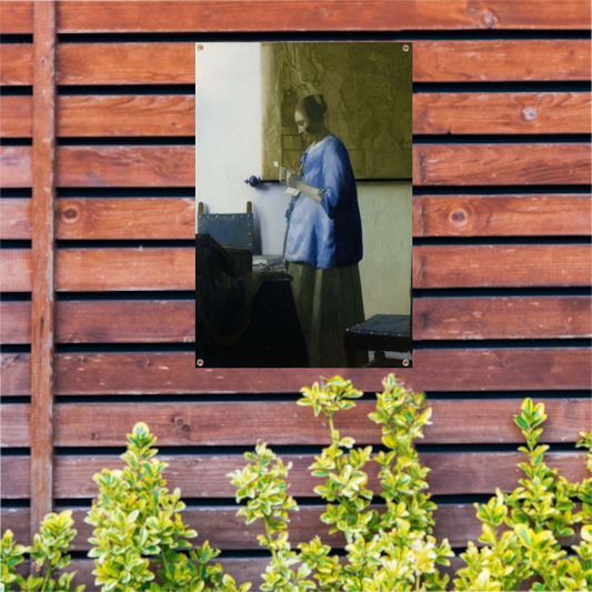 Vrouw in het blauw die een brief leest - Johannes Vermeer tuinposter