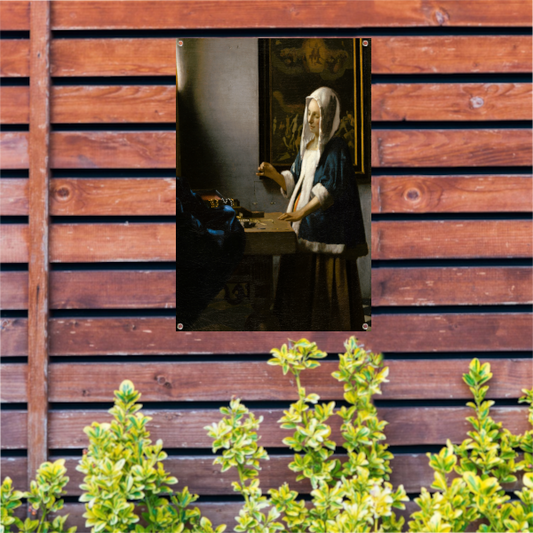 Vrouw met een weegschaal - Johannes Vermeer tuinposter