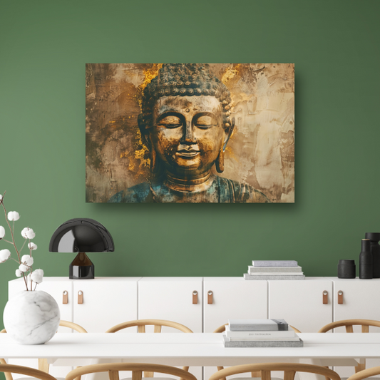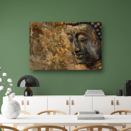 Boeddha in gouden gloed met rustieke achtergrond poster