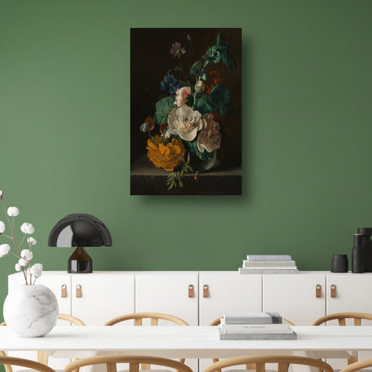 Bloemenstilleven met stokroos en goudsbloem - Jan van Huysum poster