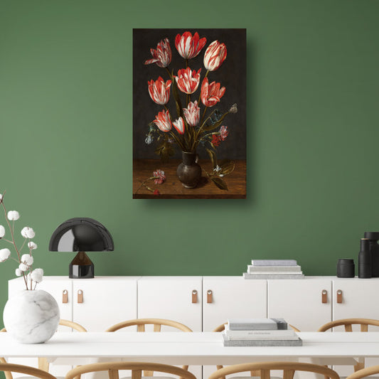 Tulpen en anjers in een aardewerken vaas - Jacob van Hulsdonck poster