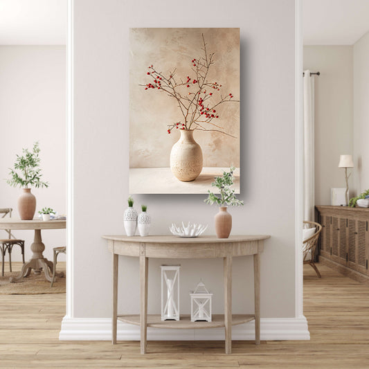 Antieke Vaas met Rode Bessentakken poster