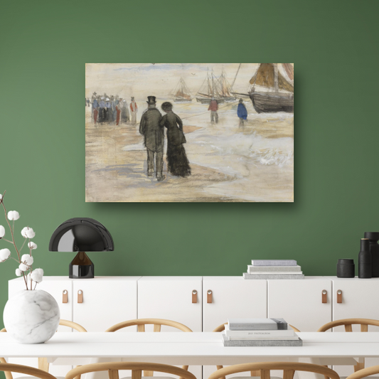 Het strand van Scheveningen - Vincent van Gogh canvas met baklijst