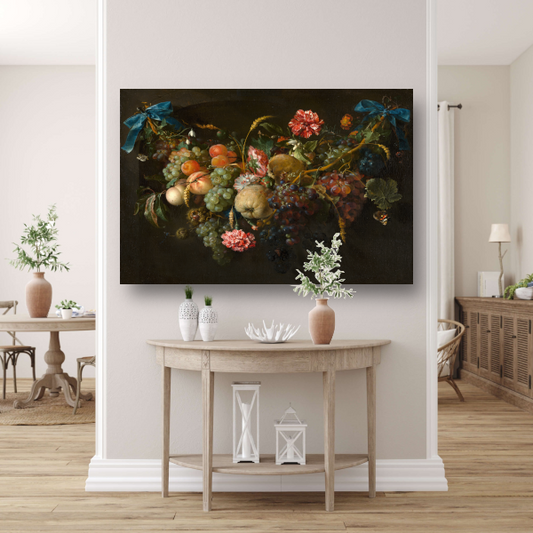 Guirlande van vruchten en bloemen - Jan Davidsz. de Heem canvas met baklijst