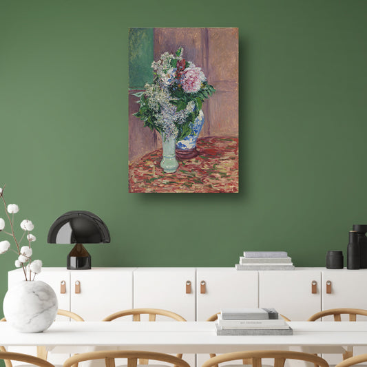 Seringen en pioenrozen in twee vazen - Gustave Caillebotte canvas met baklijst