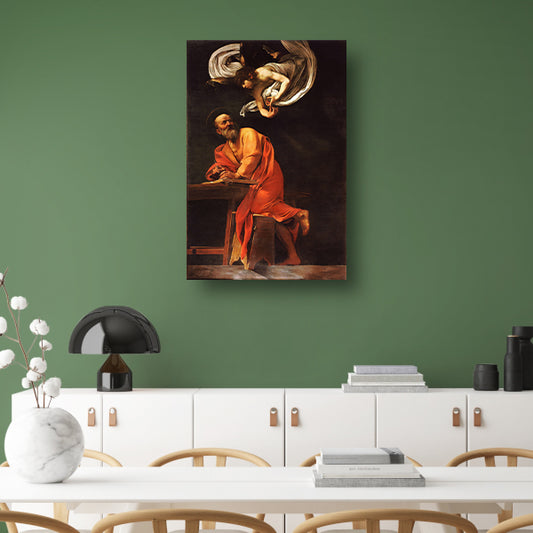 De inspiratie van Sint Matteüs - Caravaggio canvas met baklijst