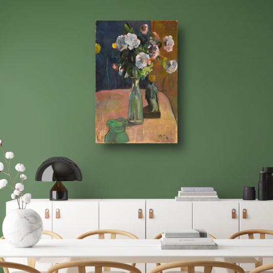 Stilleven met bloemen en idool - Paul Gauguin canvas met baklijst