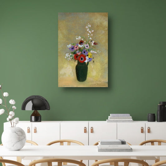 Grote Groene Vaas met Gemengde Bloemen - Odilon Redon canvas met baklijst