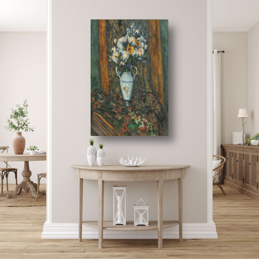 Stilleven met bloemen in een olijfkruik - Paul Cézanne canvas met baklijst