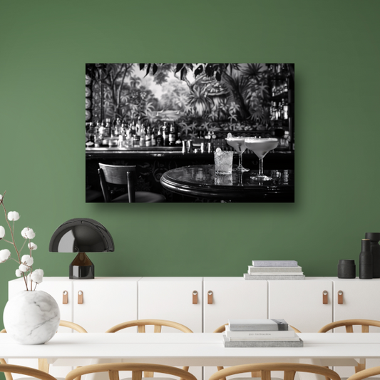 Elegante Zwart-Wit Cocktailbar Momentopname poster