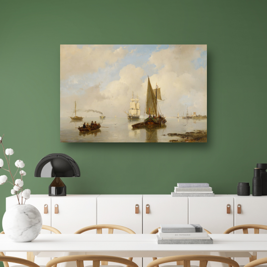 De Zeeuwsche stroomen bij stil weder, in t verschiet eene stoomboot - Andreas Schelfhout canvas