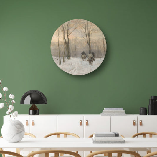 Ruiters in de sneeuw in het Haagse Bos - Anton Mauve aluminium muurcirkel