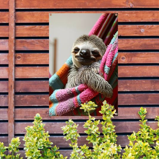 Luiaard in een Kleurrijk Hangmat tuinposter
