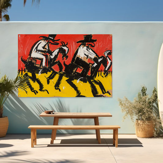 Kleurrijk en dynamisch paardenschilderij tuinposter
