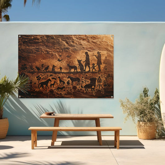 Mensen en Dieren in Sepia Wandeling tuinposter