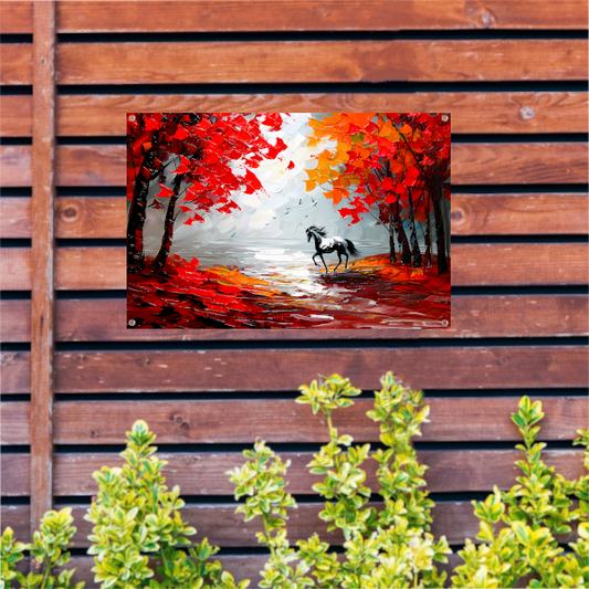 Galopperend paard in kleurrijk herfstbos tuinposter