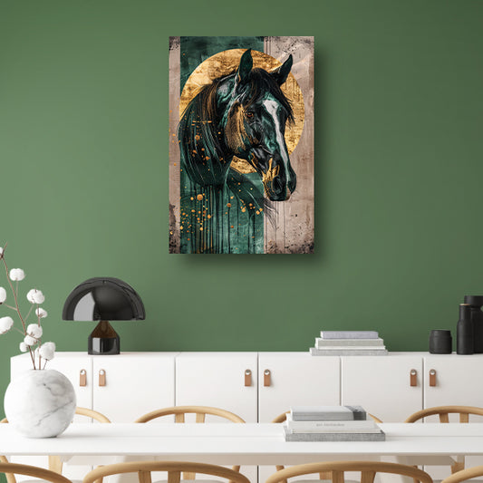 Abstract groen-gouden paardenschilderij op canvas acrylglas