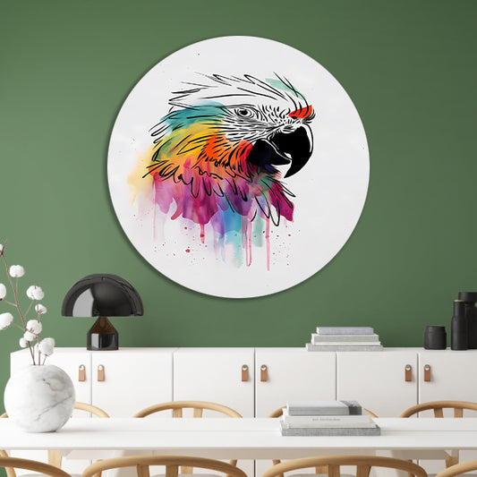 Moderne Kleurrijke Papegaai met Druipend Effect aluminium muurcirkel