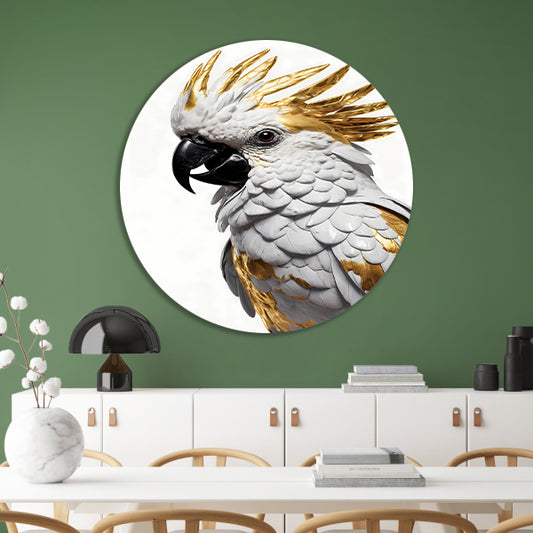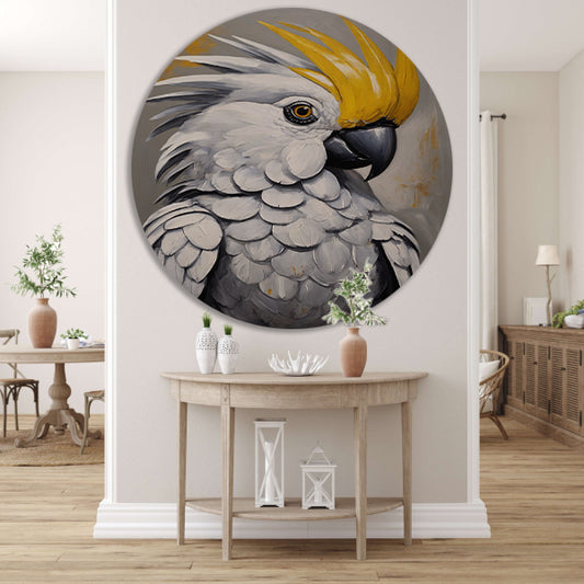 Majestueuze Kaketoepapegaai in Olieverf aluminium muurcirkel