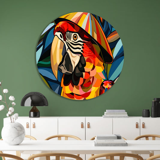 Kleurrijke Papegaai in Moderne Kunststijl aluminium muurcirkel