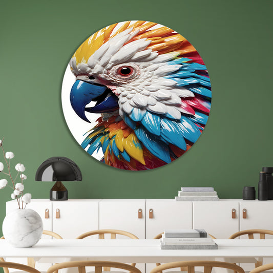 Kleurrijke Popart Papegaai Schilderij aluminium muurcirkel